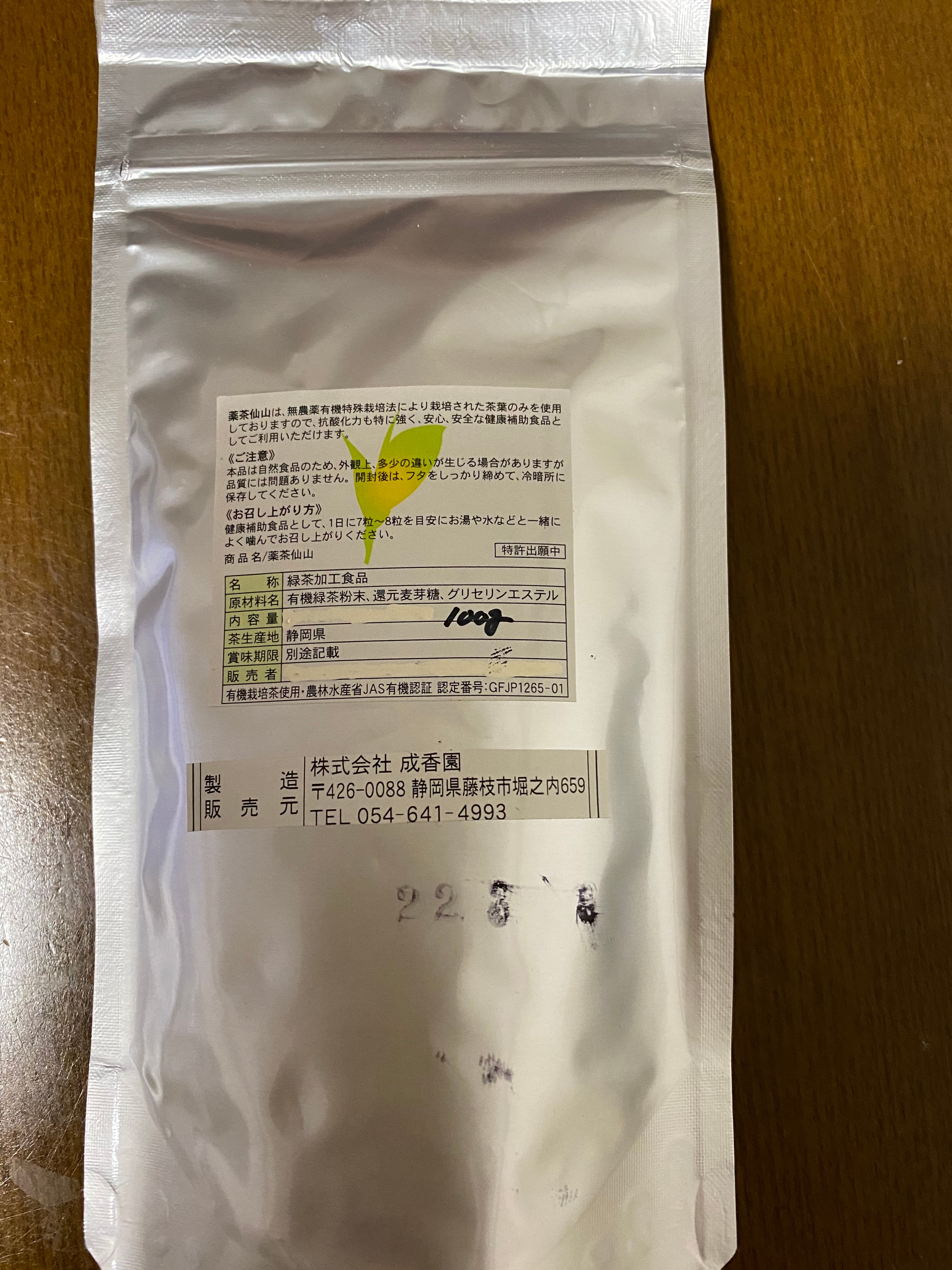 メチル化カテキン含有の有機栽培緑茶サプリメント100g